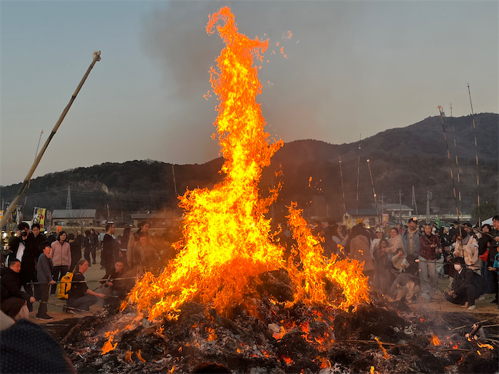 ◆午後はつくば市小田で毎年開催されている「どんど焼き」に出撃した。大勢の人たちが燃え上がる炎を取り巻いた。林立する竹竿の先にはお餅が結わえつけられていて、どんど焼きの火で焼く。屋台で地元〈霧筑波〉の「甘酒」を買ったら、コップいっぱいにお燗酒が注がれ、シアワセな日の入りを迎えた。
