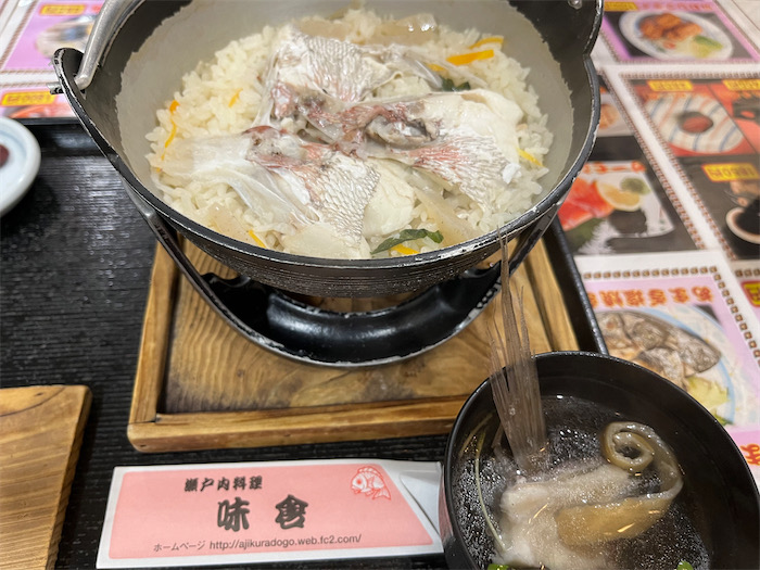 ◆今日の最高気温は34.4度。夕方になって雷鳴とともにスコールが降り注ぐ。天気的には “夏” そのもの。〈味倉〉にて南予風鯛めしをわしわし食べる。