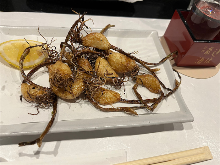 ◆松山ではホウタレ(カタクチイワシ)はたいてい天ぷらにして食べるのだが、今宵の〈はる〉は新鮮なホウタレだったのでお造りとして出してくれた。小ぶりなれど美味。