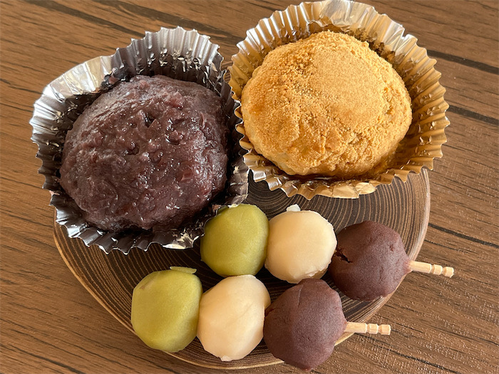 ◆お彼岸なので温泉街の〈つぼや菓子舗〉にておはぎを。しかし、〈つぼや〉に来て「坊っちゃん団子」を買わずに店を出るわけにはいかない。ほんとうはちゃんとお供えしないといけないが、このままむしやしないへ直行だ。