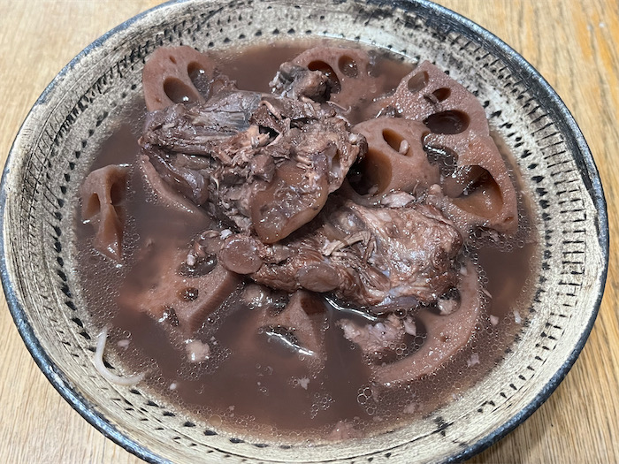 ◆三日前から煮込み続けた蓮根と豚軟骨(軟骨ソーキ)のスープは食欲をそそる黒みがかった色合いになった。せっかくの岩塩の風味を全部味わうしかないので、今宵の夕餉は十割蕎麦を用意して、きっとどこにもないだろう〈みなか食堂〉特製の一品「蓮根ソーキ蕎麦」のできあがり。昆布も鰹節も使っていない。