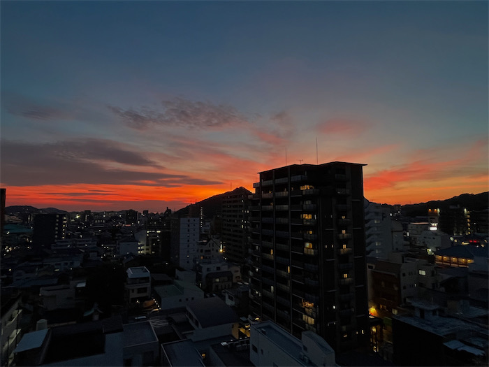 ◆午前5時半起床。小雨のち土砂降り。真っ赤な雨雲が松山あたりを覆っている。気温24.1度、西南西の風。雨の季節が戻ってきた週明け。