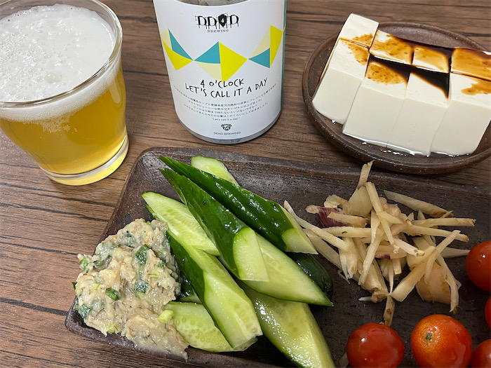 まずは前菜から。〈DD4D〉の河内晩柑IPA「4 o'Clock Let's Call It A Day」はとても爽やか。