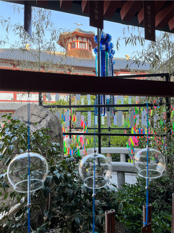 ◆午前5時半起床。晴れ。気温24.8度、湿度85%。蒸し暑い朝。七夕飾りの〈飛鳥乃湯泉〉一番風呂に飛び込んできた。