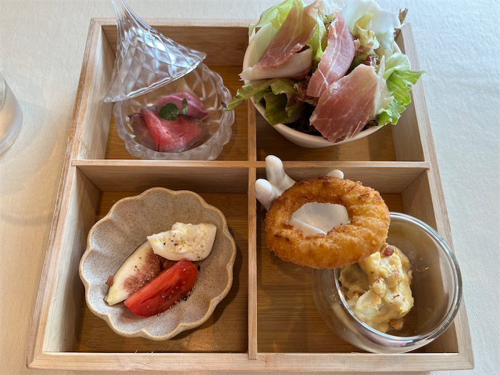 ◆本日のランチは西大沼の〈La Cucina del Cuore Mais〉にて。ごちそうさまでした。松花堂弁当のような前菜が彩りよし。
