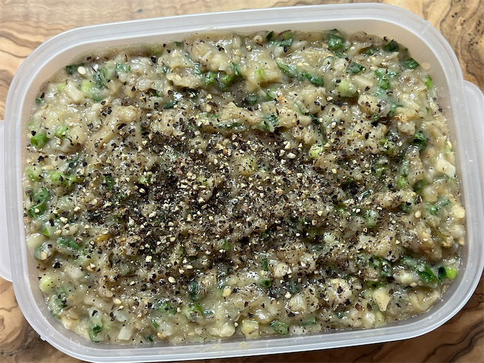 「葱味噌」【食材】麦味噌(1kg)・細葱(10本)・根生姜(1個)・白胡麻(大さじ1)・粗挽き黒胡椒(小さじ1)。