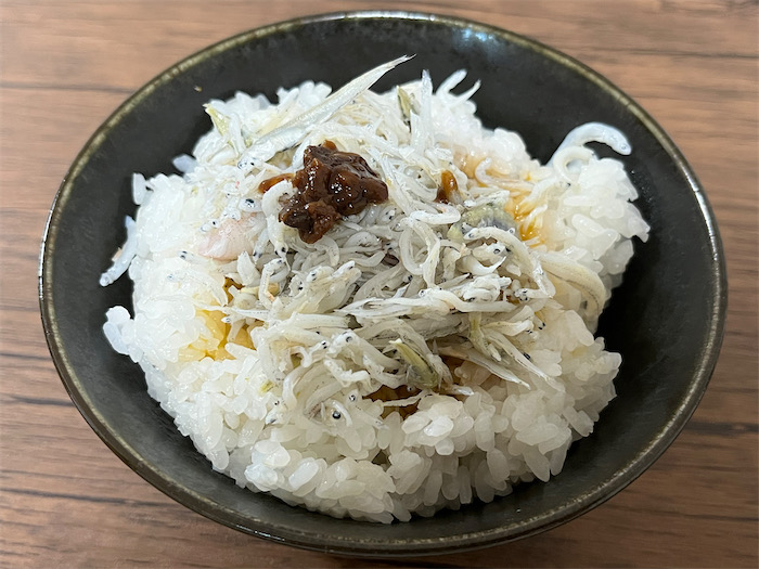 〆のごはんはシンプルなTKG。新鮮な釜揚げしらすさえあればもう十分。