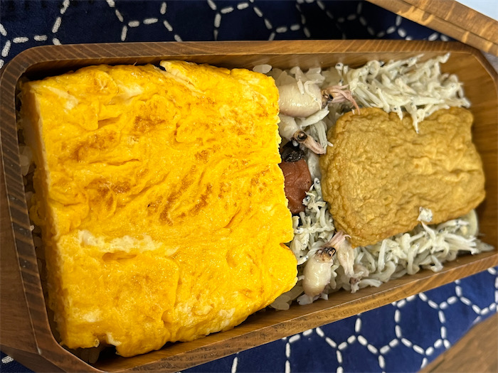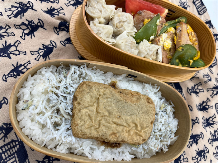 ◆ここのところ〈みなか食堂・道後店〉のお弁当写真を流していない。やっぱり “休業” に追い込まれたかと勘ぐられるのもなんなので、今朝のお弁当の証拠写真を。当店の昼弁当は毎日ほぼ同じ “安定平衡点” に達しています。釜揚げしらすの “生物多様性” は季節によって変わる。「おまえ、しらすとちゃうやろ」というくらい何センチもある巨大な魚が寝そべっていることもあれば、今日のように1cmにも満たないイカの幼生がたくさん入っていることもある。「もっと大きくなりたかったのに、なんでこんな小さなうちに弁当箱に詰められなアカンねん」というイカたちの怨嗟の声が聞こえてくる。