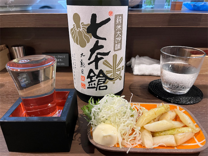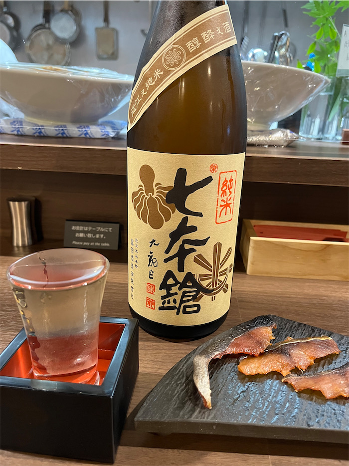 ◆足取り重く道後温泉へ帰還。〈道後むすび・かぐわ〉へ。滋賀は長浜の〈七本鎗〉が道後で呑めるのはとてもありがたい。いま長浜バイオ大学で開催中の進化学会大会に参加していれば、その場で呑めただろう。残念無念。