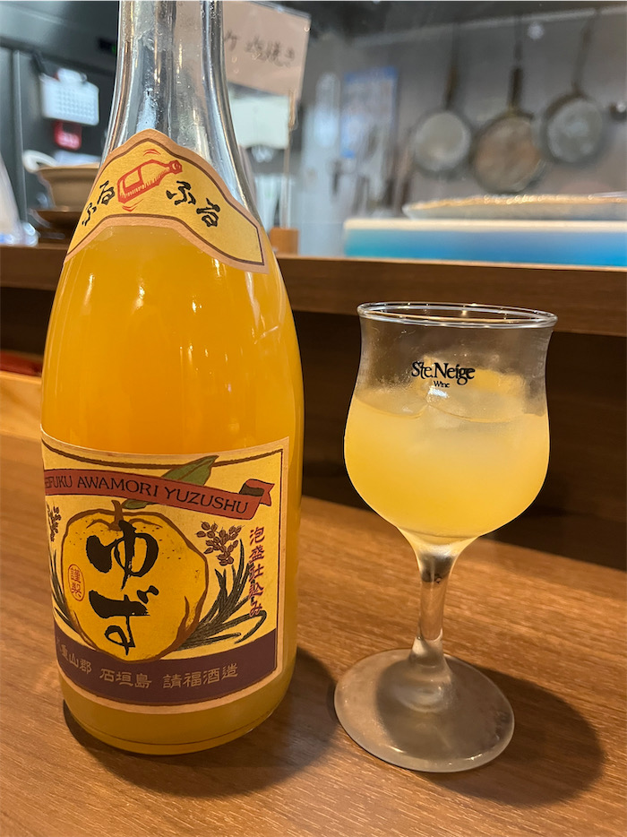 ◆夜はいつもの〈道後むすび・かぐわ〉にて。松山で石垣島に出会うとは。