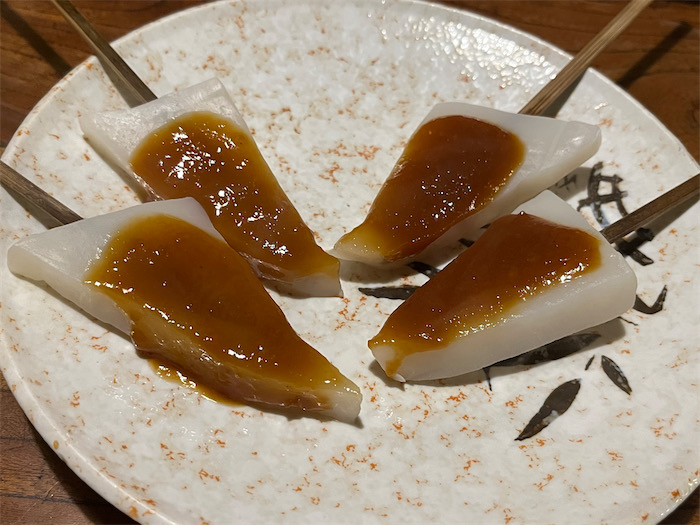 ◆夕方になっても真夏日ラインを下回らない。同じ学科の中島琢自先生から手造りの「醤【ひしお】」をいただいたので、さっそく冷奴にトッピングしてみた。この「醤」とともに〈みなか食堂・道後店〉常備の宇和島麦味噌の葱味噌を豆腐に相乗りさせる(右が醤、左が葱味噌)。「醤」はとりあえず冷蔵庫に安置したが、中島先生の話では常温熟成をするとさらにうまくなるとのこと。