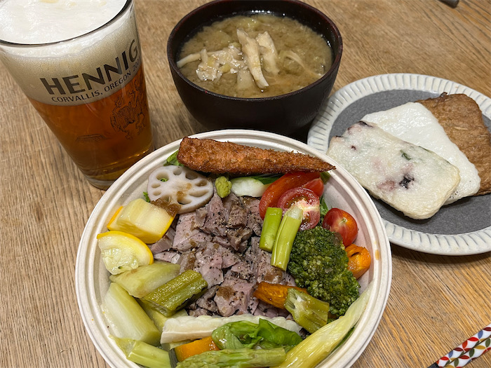 ◆今日の最高気温は昨日と同じ35.9度。湿度50%台なので、乾いて熱い内陸気候。こんな猛暑日は日が暮れてもビールをうぐうぐ呑むしかないので、メニューの選択肢はきわめて限られている。