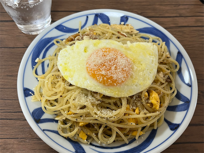 ◆今日は忙しいので、朝餉は「貧乏人のスパゲティ(松山バージョン)」をささっとつくった。