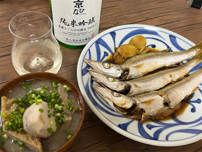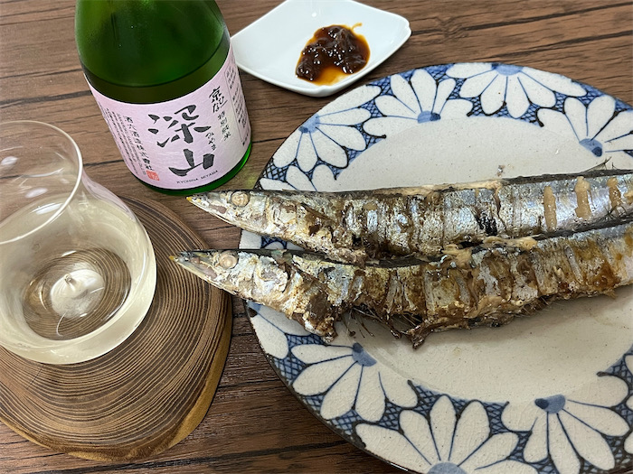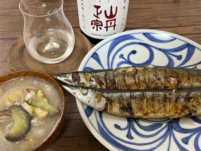 いただきものの内子・酒六酒造の〈京ひな〉特別純米「深山」とともに、今年の新秋刀魚をたらふくいただきました。ごちそうさま。