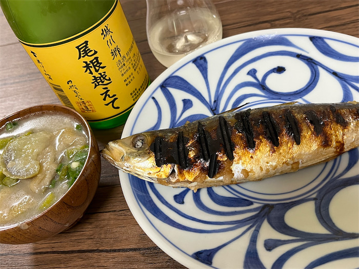 柔らかく炊けた秋茄子とシャキシャキ感が残るミョウガの対比がとてもおいしい。そして、メインの秋秋刀魚はロースターで塩焼きにして2尾とも食べ尽くしてしまった。食欲の秋。