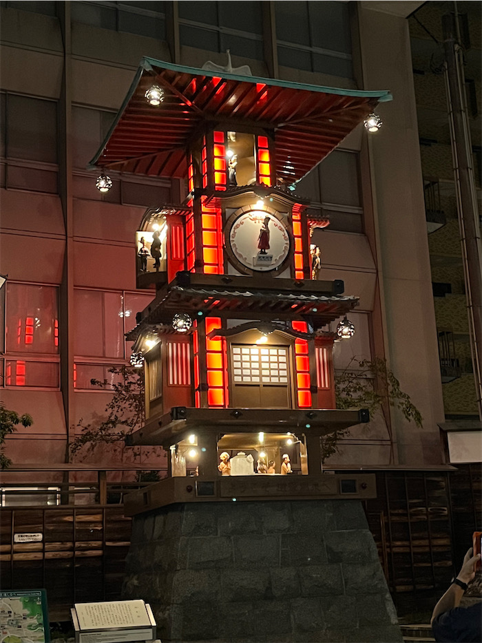 ◆復路のフライトはつつがなし。松山空港から道後温泉への空港リムジンバスも遅延なく到着。駅前の「坊っちゃんからくり時計」が動いていた。