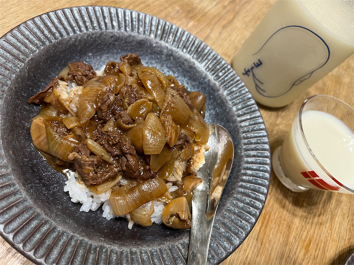 ◆〈みなか食堂・つくば本店〉の夕餉はひさしぶりのハヤシライス。これに合わせて山形の酒田〈楯の川酒造〉のヨーグルトリキュール「BAR ヨー子」を抜栓。アルコール度数6度。お酒というよりはラッシーみたいな飲み心地。