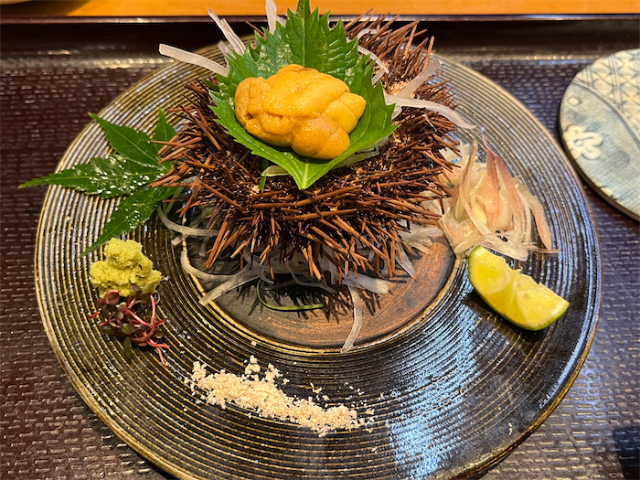 ◆即座に〈奴寿司〉に避難。もう遅い時間帯だったので客はワタクシひとり。愛南の地だこ、今治のマナガツオと青ギゾ(キュウセン)、そして二神島のウニ。極楽浄土。