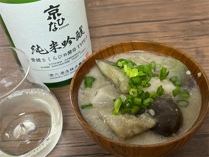 茄子は熱を通すとおいしくたくさん食べられる。今宵の〈みなか食堂・道後店〉は大洲の里芋と樋又の秋茄子そして松山揚げのお味噌汁を。宇和島・井伊商店の麦味噌を常備しているので、こういうときにはとても便利。里芋と茄子は茹でこぼしたりアク抜きはいっさい不要。ざくざく切ってそのまま昆布といりこの合わせ出汁で火にかける。里芋に火が通ったらできあがり。具だくさんの汁物なので、日本酒のアテにつまんだり、〆のご飯とともにいただいたり。