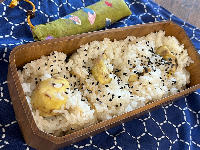 ◆昨夜炊いた土鍋栗ごはんが残っていたので、今朝のお弁当づくりは詰めるだけ。とってもシンプル。今回の栗ごはんは、玄米ではなく白米を使い、昆布だしではなくふつうのお水で炊いた。炊飯時間が玄米よりも短いので栗が崩れない。炭水化物ばかりではないかというクレームはまったく聞こえません。