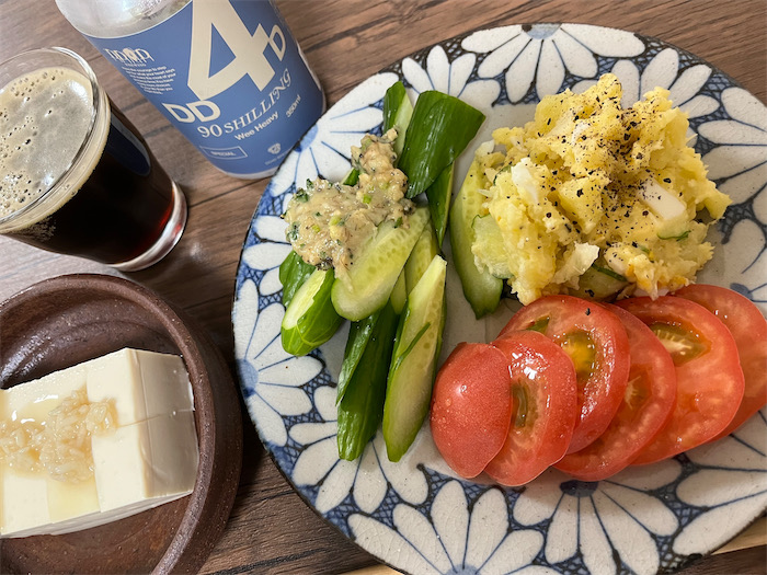 ◆日中の最高気温は30.6度と真夏日ラインを超えた。午後6時過ぎ、日暮れがしだいに早くなる。道後温泉の東の空に満月が浮かんでいる。〈みなか食堂・道後店〉の野菜室に眠っていたキタアカリを動員してひさしぶりにポテトサラダをつくった。つくりたての温かさは自家製ならでは。そして、お月見の夜は〈DD4D Brewing〉の Wee Heavy「90 Shilling」を。