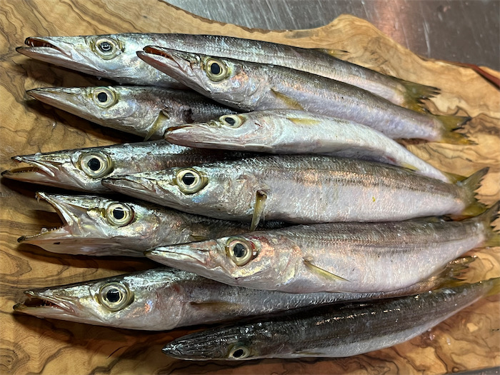 ◆未明に叩き起こされたので、ヘンに時間がありすぎて困る。そういえば、昨日の夕方、業務スーパーでカマスが10尾280円だったので連れてきたことをふと思い出し、下界の鉢合わせの喧騒「もてこい〜もてこい〜」をBGMに早朝から「カマスご飯」をつくることにした。大きい5尾は塩焼き用にして、残る小さい5尾をカマスご飯に。炊き込みの鯛飯はつくったことがあるがカマスは初めて。