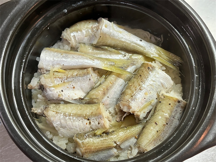 —— 白米1合半にカマス5尾では魚だらけになるかと思ったが、意外や意外、もっとたくさんカマスを詰め込んでもよいほどだった。カマスが安い松山ならではのぜいたくな炊き込みご飯。