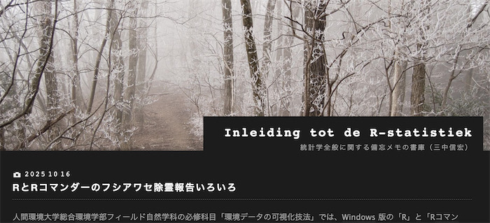 ◆午前の┣┣" 撃ち —— すっかり忘れていた「国勢調査」をオンラインで回答完了。/今日の「環境データの可視化技法」第2回高座に先立って、Windows版Rインストーラー「R-4.5.1-win.exe」をダウンロードするよう受講生にメール連絡した。最近の学生はメールを読まないことがあるので要注意。なお、ひとりだけ Mac ユーザーがいるので、それは個別対応ということで。/学部会議 10:00〜12:30。ひたすら長かった……