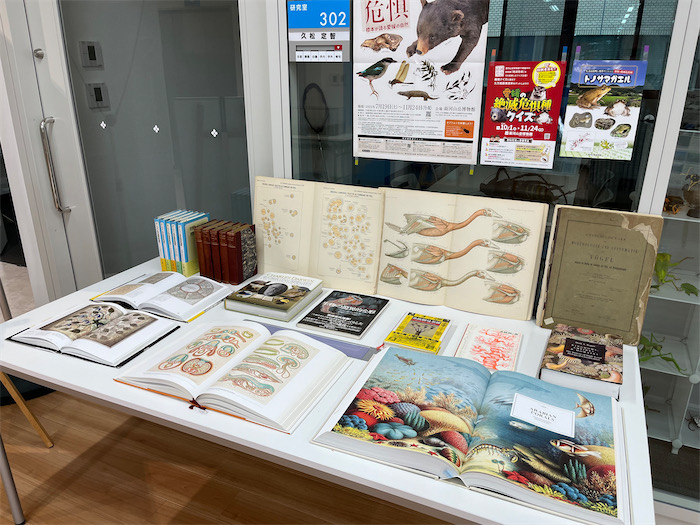 ◆午後の┣┣" 撃ち —— 午後になっても降り続く雨。フロアでは学生たちが学祭準備に暇がない。ダーウィン&ヘッケル本も並べてみた。新棟3Fフィールド自然学科のゼミスタジオでは水族の学生たちが淡水・海水水槽の搬入とセットアップをしている。/合い間に昨日の中間試験の成績分析を終わらせた。