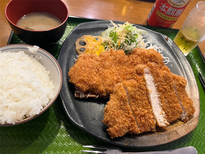 ◆お昼過ぎに本日のAO入試業務が終わったので、雨の中、同僚の先生たちとすぐ近くのとんかつ・トンテキ屋〈向日葵亭〉へ直行。道後に来てからとんかつを食べたのはひょっとして初めてかも。ささやかにダブルを注文し、ワルい先生たちにそそのかされて冷たい “お水” もついでに。これでいいのだ。