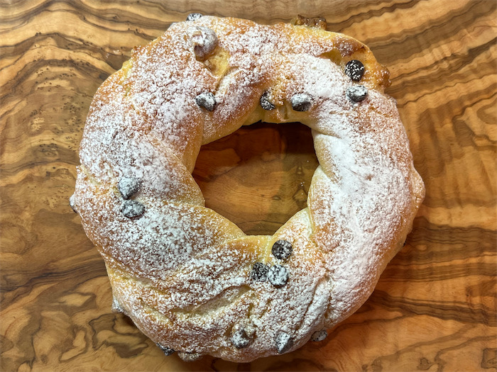 ◆午前5時半定時起床。気温9.8度、北東の風。昨日のように、雨・風・雷が揃い踏みするのはひらにひらにご勘弁を。寒い早朝は長湯が基本。よく温まらないと湯冷めしてしまう。〈飛鳥乃湯泉〉の湯上がりに寄った〈ユノマチベーカリー〉で、これまた新製品の本日発売クリスマスリースパンが並んでいたのでさっそくひとつ買う。