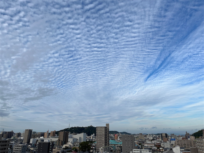 ◆午前6時過ぎのろのろ起床。晴れ。秋空に広がる鰯雲。気温9.3度。また冷え込んできた。北東の微風。