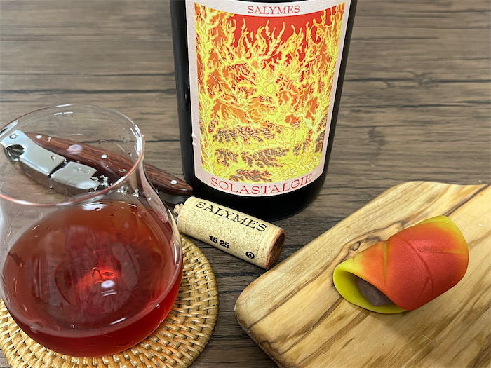 ◆「この赤ワインには餡がベストマッチ」と強く強く勧められ、和菓子とともに連れ帰ったローヌのPaul Barlet〈Solastalgie 2024〉。ガメイでアルコール度数14度はけっこうキケンかも。
