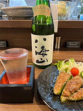 ◆午後は事務書類を書き過ぎたので、そろそろ “自分リミッター” が作動する。早めに撤収。一日の疲れを癒やすひととき。〈七本槍〉純米吟醸と〈八海山〉純米大吟醸。
