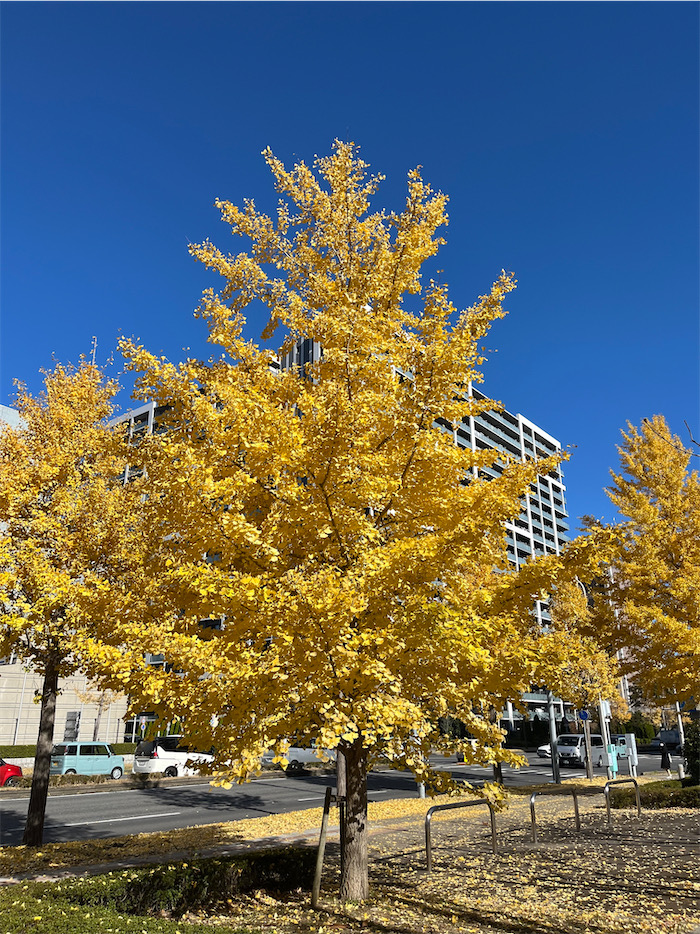 ◆つくば市街地を東西に貫く土浦学園線ではイチョウ並木が見頃を迎えている。