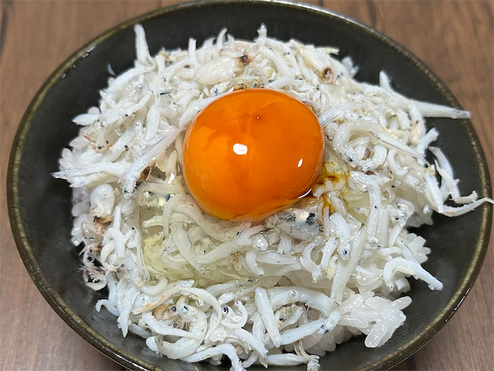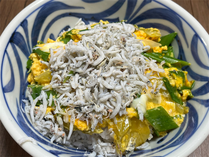 ◆夕餉は「玉子丼の釜揚げしらすトッピング」。