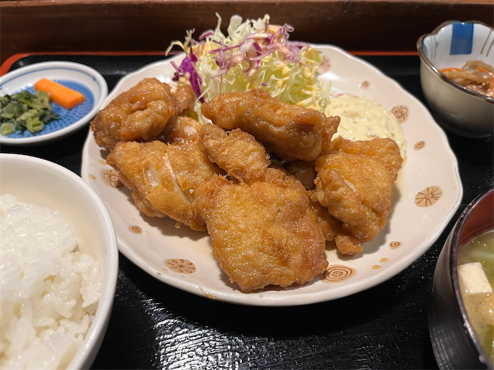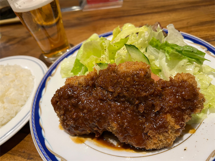 ◆その後、洋食店〈グリルみつば〉へ。とり天とビーフカツを食べてホテル帰還。