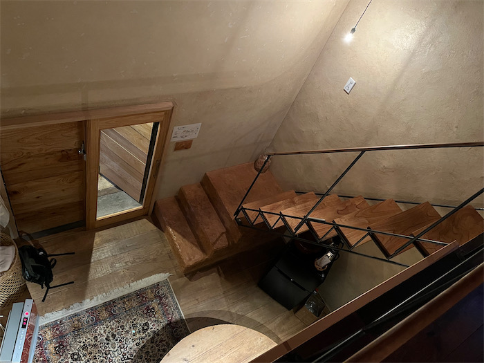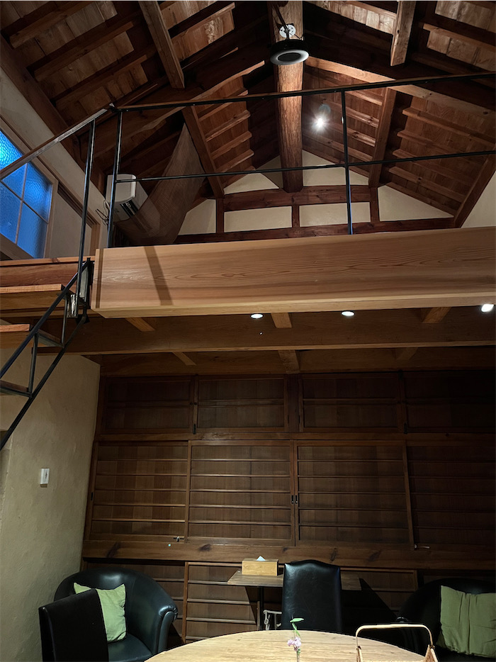 ◆今回は「蔵」という部屋に泊まった、元が蔵なので天井が高く、ベッドルームとして階上のロフトが設けられている。玄関からは奥の突き当りで静けさ満点、内湯までたった数歩。カンヅメになるならこういう部屋はぴったりかもしれない。