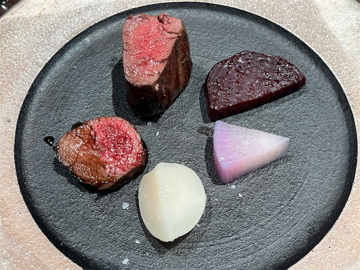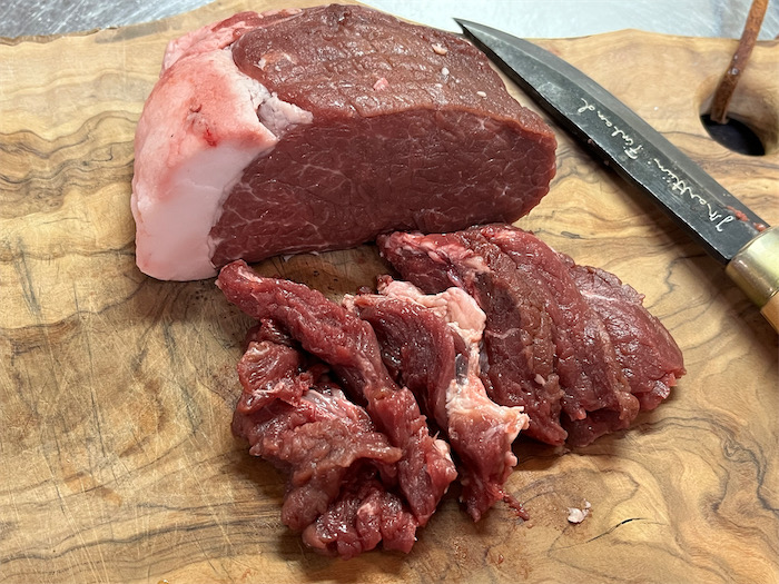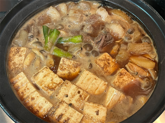 ◆休日の夕餉は、昨日いただいた猪のお肉が200gほどあるので、さっそく厨房で「ぼたん鍋」を仕込んた。真っ白な脂がきれいなイノシシの肉塊を切り分けて、宇和島の麦味噌と岡崎の八丁味噌を混ぜた出汁を土鍋に注ぎ、根菜や焼き豆腐などとともにじっくり煮る。〈DD4D Brewing〉の Citrus Hard Seltzer「Citrus Daimyo」とともに。河内晩柑のスッキリ風味が猪肉に合う。