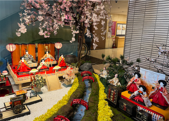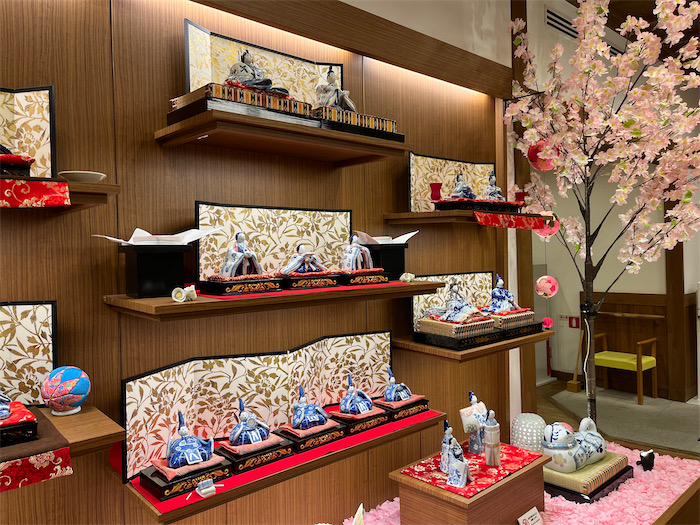 ◆午前5時半起床。曇り。気温6.4度、東風。ぜんぜん冷え込まない夜明け前。朝イチの〈飛鳥乃湯泉〉玄関ホールでは、今日から始まる〈砥部焼ひなまつり2026〉の飾りつけが人目を引く。