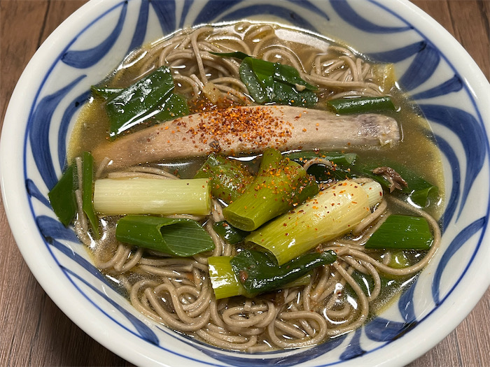 ◆今宵の遅い夕食は、ポトフの最後の残りを平らげて、余ったスープに蕎麦を投入。具はホネ以外もう何もないが、最後の一滴までムダなく食い尽くした。フードロスは自炊の敵である。