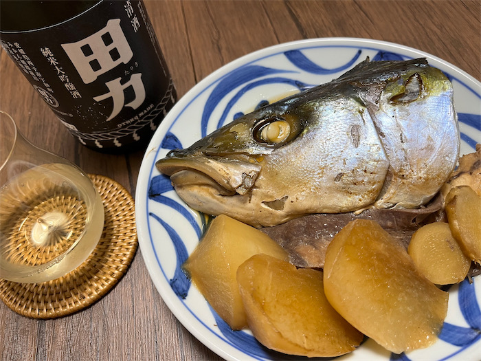 ◆今日は終日バタバタしていたので、早めに道後樋又を撤収した。いつもの業務スーパーで「ぶりアラ」が1kgたった300円だったので、迷わずゲット。今宵の〈みなか食堂・道後店〉はストレートな「ぶり大根」です。卯之町・元見屋酒店の純米大吟醸 松山三井〈田力〉を抜栓。ぶりうますぎ〜