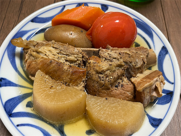◆今宵は「スペアリブと根菜の和風ポトフ」。昆布&いりこ出汁をベースに、二日がかりで仕込んだ。岩塩スープがとてもええ感じなので、大根を追加して明日以降も食卓に出す予定。