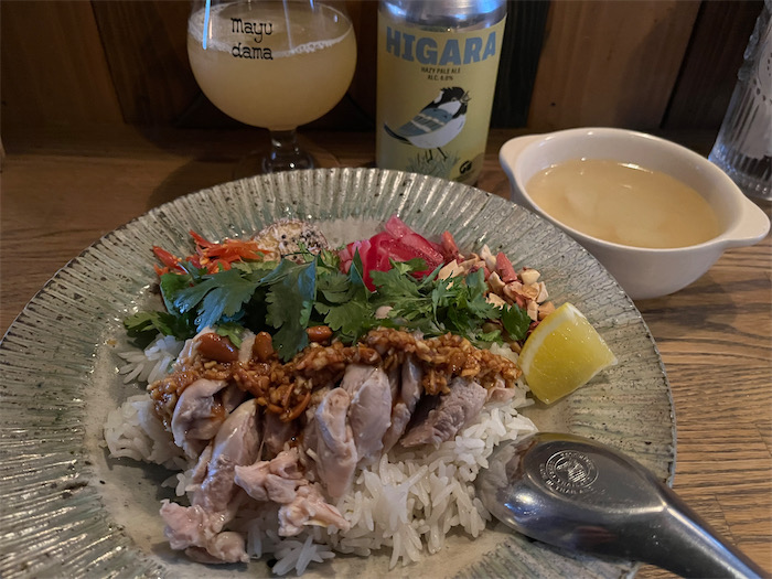 ◆今宵はひさしぶりに〈mayudama〉で「カオマンガイ」を、〈Groundtap Brewery〉のHazy Pale Ale「HIGARA」とともに。ごちそうさまでした。