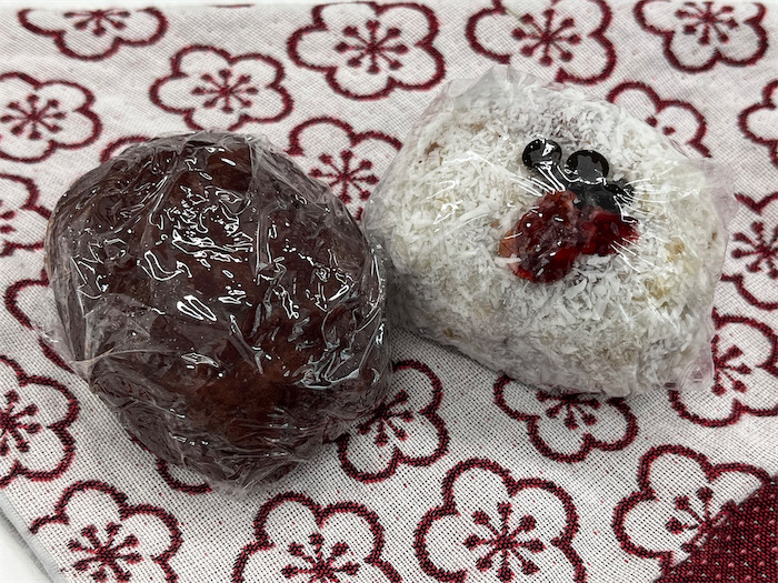 ◆そして三時のむしやしない。粒あんとココナッツのおはぎ。