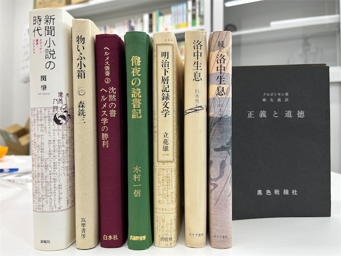 今日の収獲ブツは10冊 —— 関肇『新聞小説の時代:メディア・読者・メロドラマ』、森銑三『物いふ小箱』、サン=ディディエ『沈黙の書/ヘルメス学の勝利』、木村一信『倦夜の読書記』、立花雄一『明治下層記録文学』、杉本秀太郎『洛中生息』『続・洛中生息』、クロポトキン『正義と道徳』他2冊。『洛中生息』は二冊ともつくばにあるのだが、つい呼ばれて。伊勢崎の「黒色戦線社」は初めて見る版元。戦前の無政府主義文献を出していたようだ。